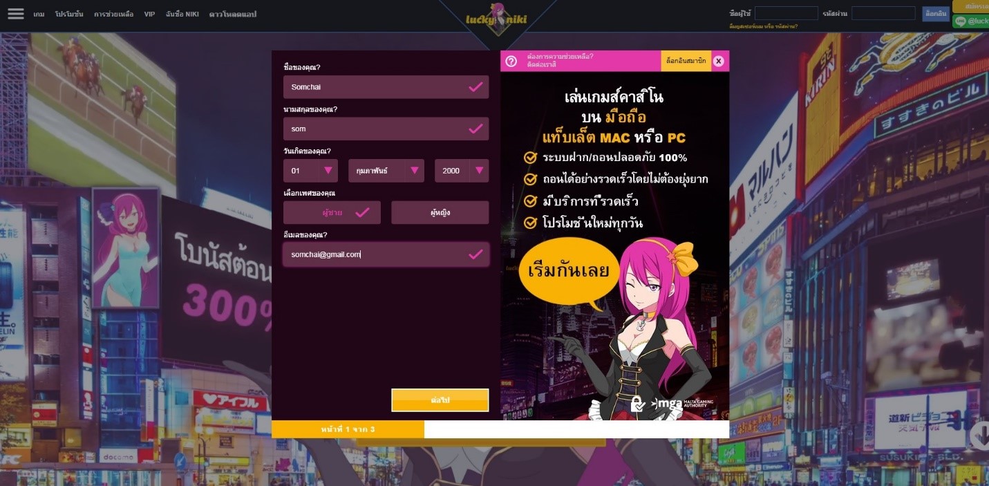 สิ่งแรกที่คุณต้องทำเพื่อที่จะเข้าสู่ระบบของ LuckyNiki คือการสมัครสมาชิกบัญชีกับทางเว็บไซต์